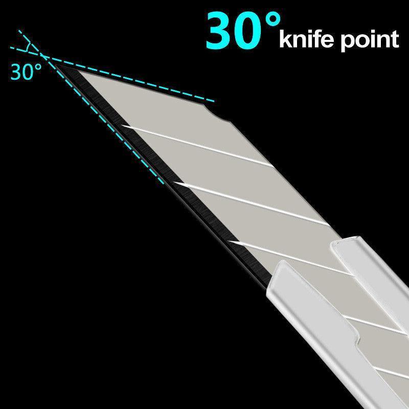 Each utility knife is sharp and rust-resistant. The safety lock design will safely lock the blade in place. All of them are compact and pocket size, so you can easily cut through, It allows you to lock the blade in the measurement you need.