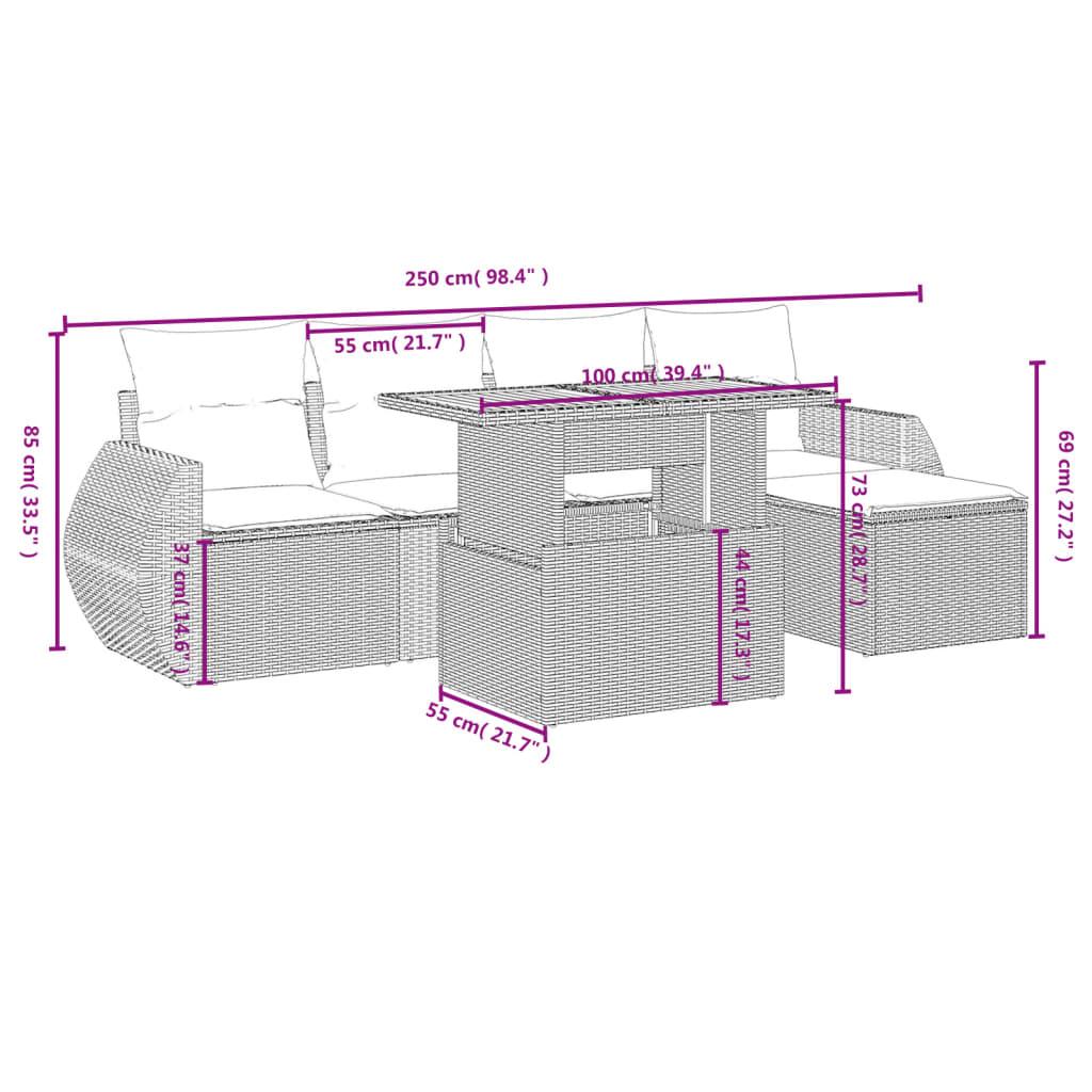 6 Piece Garden Sofa Set with Cushions Grey Poly Rattan