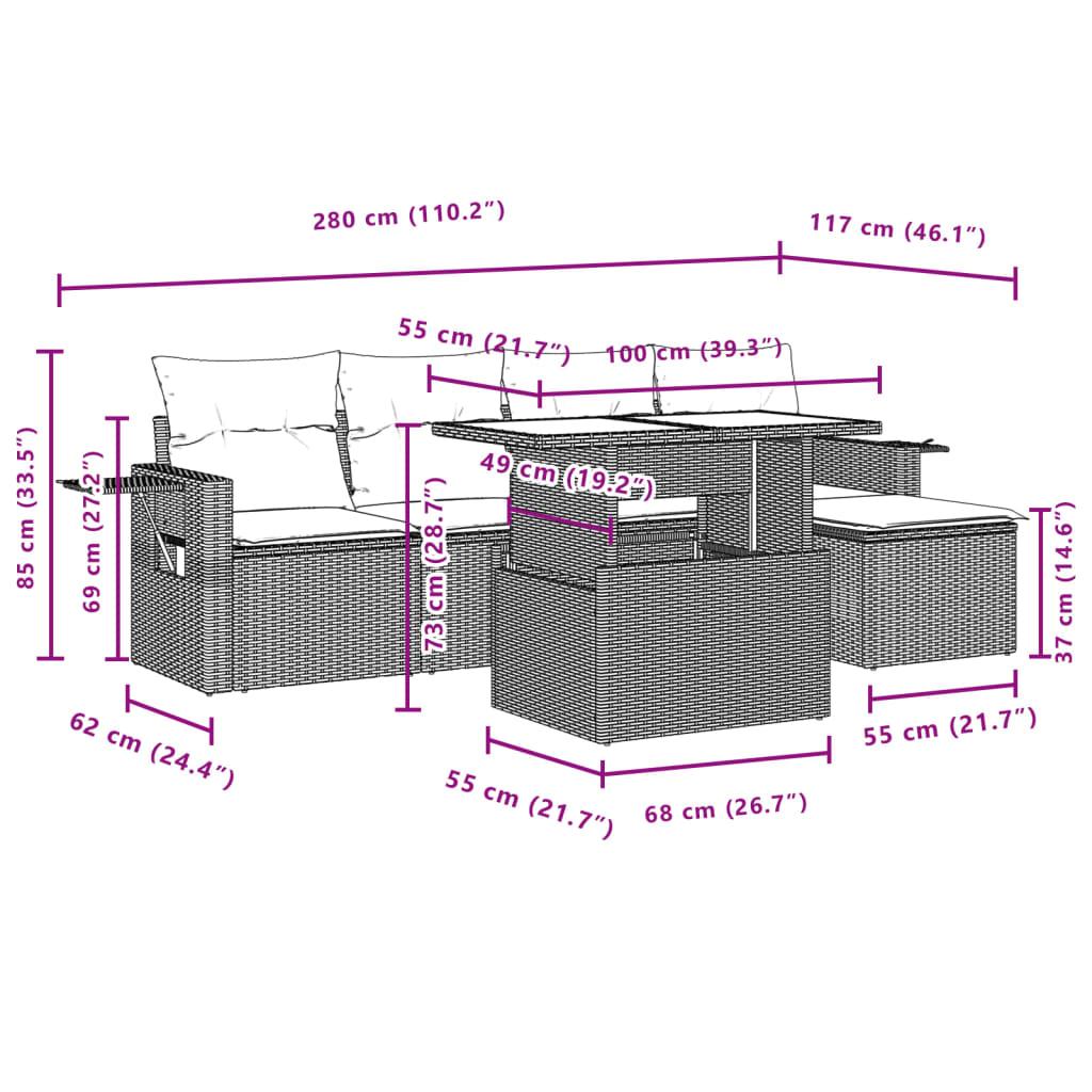 6 Piece Garden Sofa Set with Cushions Grey Poly Rattan