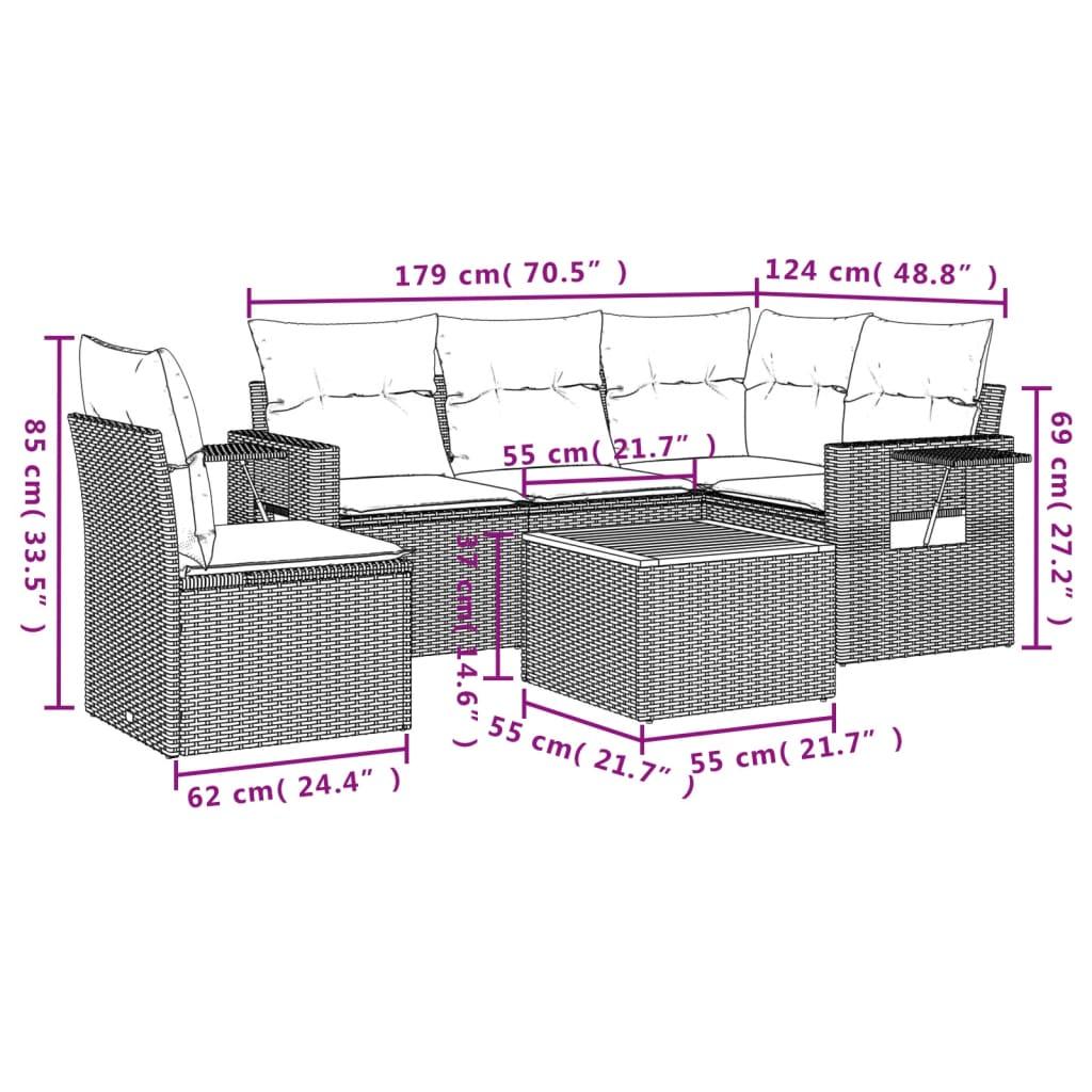 6 Piece Garden Sofa Set with Cushions Mix Beige Poly Rattan