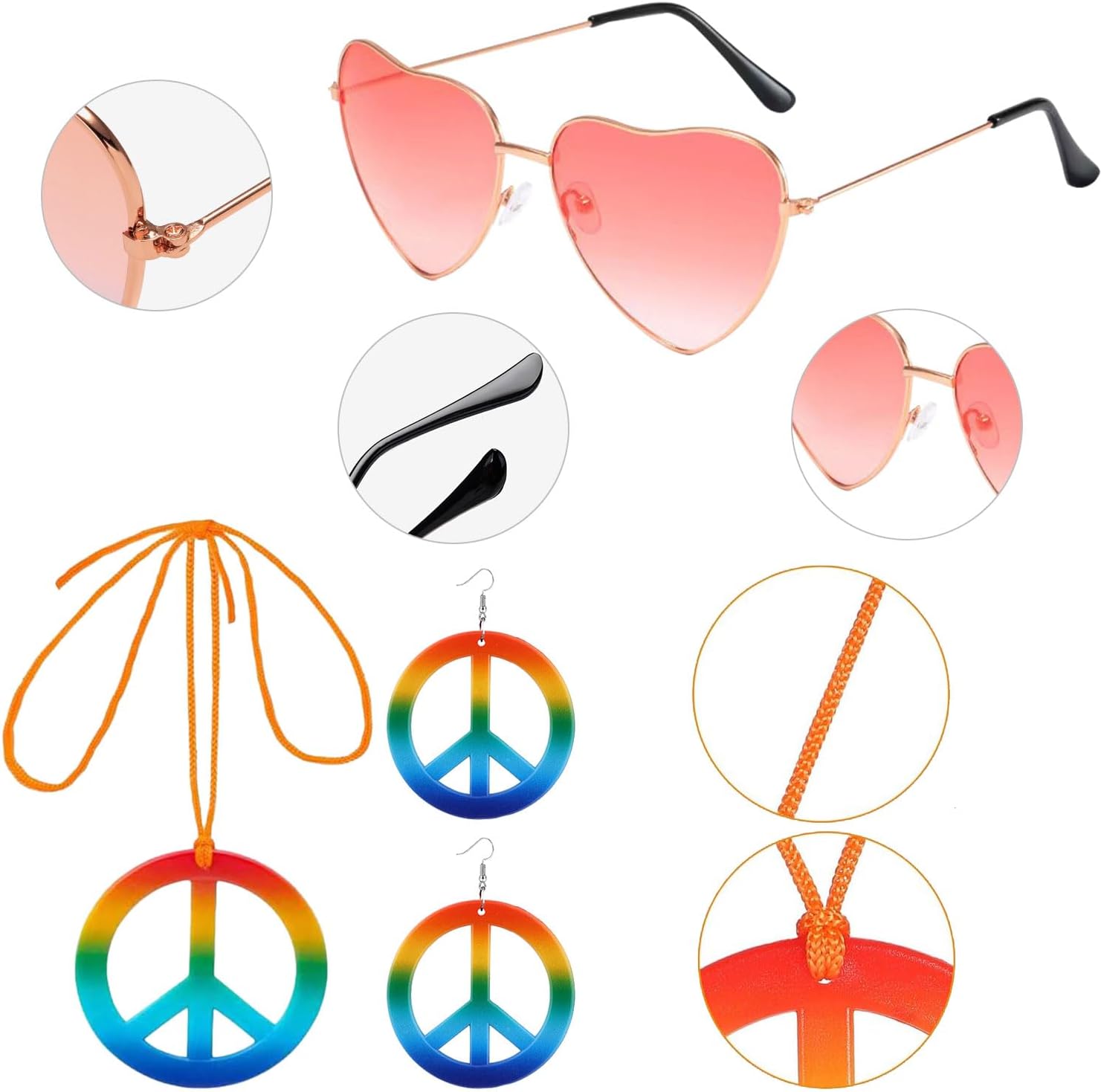 【Wide Occasions】: Hippie costume accessories set is suitable for hippie parties to show love for peace, different accessories can give you different elements and matching decisions in festivals, Halloween parties, cosplay parties, Valentine's Day carnival, parties and other occasions; the exquisite jewelry is suitable for everyday wear, hippie concerts or coordinated with 1960s, 1970s costumes.