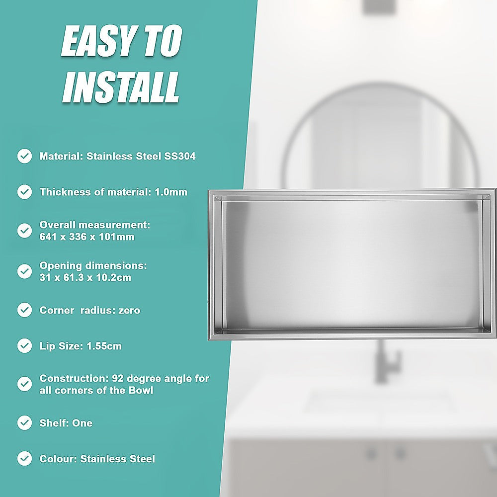 Give your bathroom a makeover with our 641 x 336 x 101mm Shower Niche – Single Shelf Organizer, no tiling required!