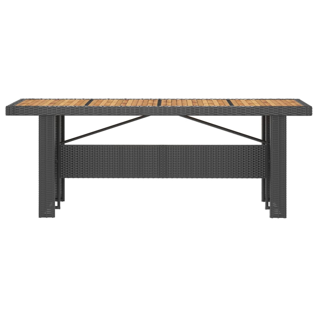 This outdoor dining set, with an elegant and contemporary design, is an eye-catching addition to your outdoor living space. This garden furniture set features a sturdy powder-coated steel frame, which is very stable and durable. The PE rattan makes this dining set easy to clean, hardwearing and suitable for daily outdoor use. The tabletop is made of solid acacia wood, a tropical hard wood, which is weather-resistant and durable. The reclining chairs offer the utmost seating comfort and great support. The backrest is easily adjustable as per your desire by using the button on the side. Additionally, the thick and soft seat and back cushions are also highly comfortable. Note: We recommend covering the set in the rain, snow and frost for extended life.