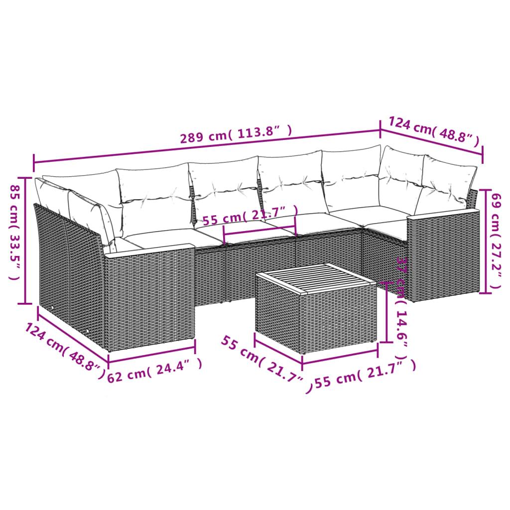 This garden sofa set is the perfect addition to your backyard, terrace, or patio, providing a comfortable and inviting space for chatting with family and friends or simply relaxing and enjoying the outdoors. Durable material: PE rattan, also known as poly rattan, is a strong, low-maintenance synthetic material that looks like natural rattan. It's lightweight, easy to clean, and commonly used for outdoor furniture due to its durability and weather-resistant properties.Stable and easy-to-clean tabletop: This garden table has an acacia wood top that is sturdy, durable, and easy to clean with a damp cloth.Removable and washable cover: These seat cushions feature removable covers for easy washing and maintenance.Robust and stable frame: The powder-coated steel frame ensures that the garden furniture is strong and stable for daily outdoor use.Modular design: This outdoor furniture set has a modular design, making it completely flexible and easy to move around, so you can create a customised outdoor furniture arrangement. Good to know:To make sure your outdoor furniture stays beautiful, we recommend protecting it with a waterproof cover.