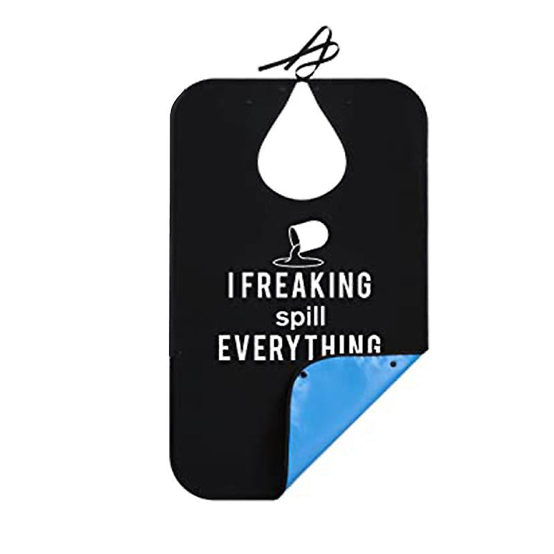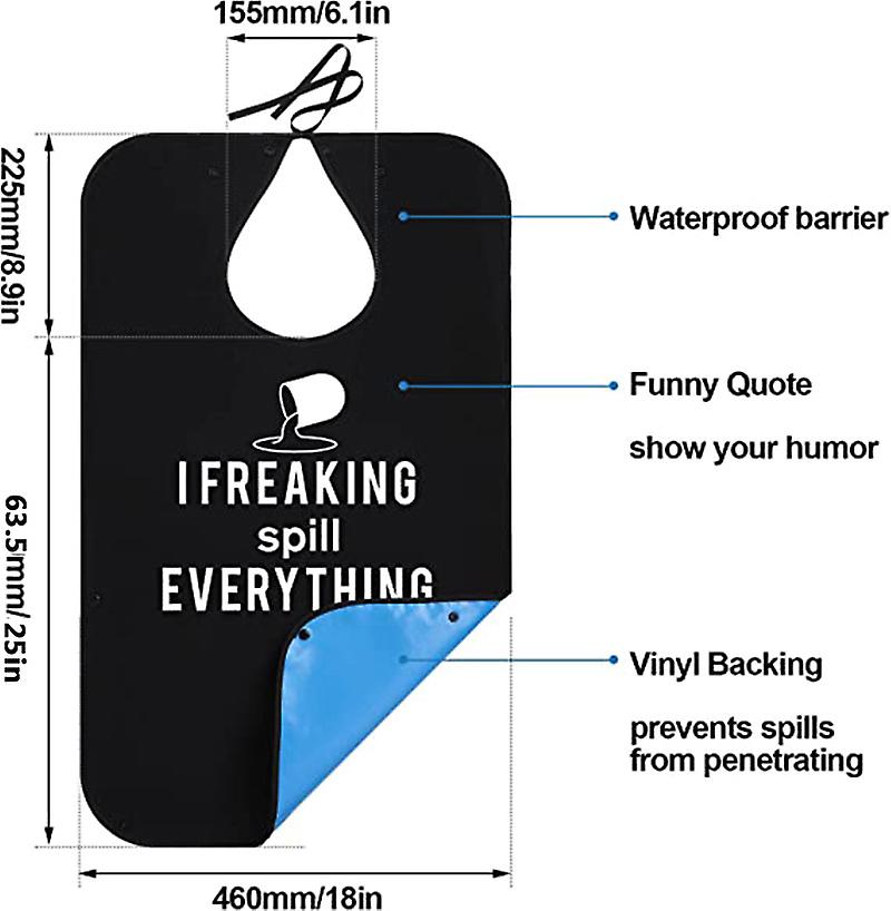 Package contents: you will receive an adult bib that measures approximately 33.5 inches / 86 cm long and 18 inches / 46 cm wide. It is designed with tie straps and button closure to provide double security, ideal for the sick, elderly, convalescents, bedridden, disabled adults, etc.Trendy and waterproof: this fun adult bib is made of waterproof and lightweight polyester material, so you can easily wipe and scorch the food. The adult bib is designed in black to perfectly hide stains and spills. In addition, the bib helps to make the people feel lighter and dignified.KEEP CLEAN: The food clothing protector is very easy to clean and the crumb catcher on the bottom collects food and soup. So you will always keep your white t-shirt clean and never be searched by cleaning the bib.Reusable: you can wash and reuse this bib many times and never waste money on disposable bibs. It is super convenient for you.ADJUSTABLE - The adult bib is equipped with two buttons and a strap for the neck closure, making it easy to adjust the tightness. And the buttons at the bottom of the bib allow you to choose whether you want a crumb catcher.