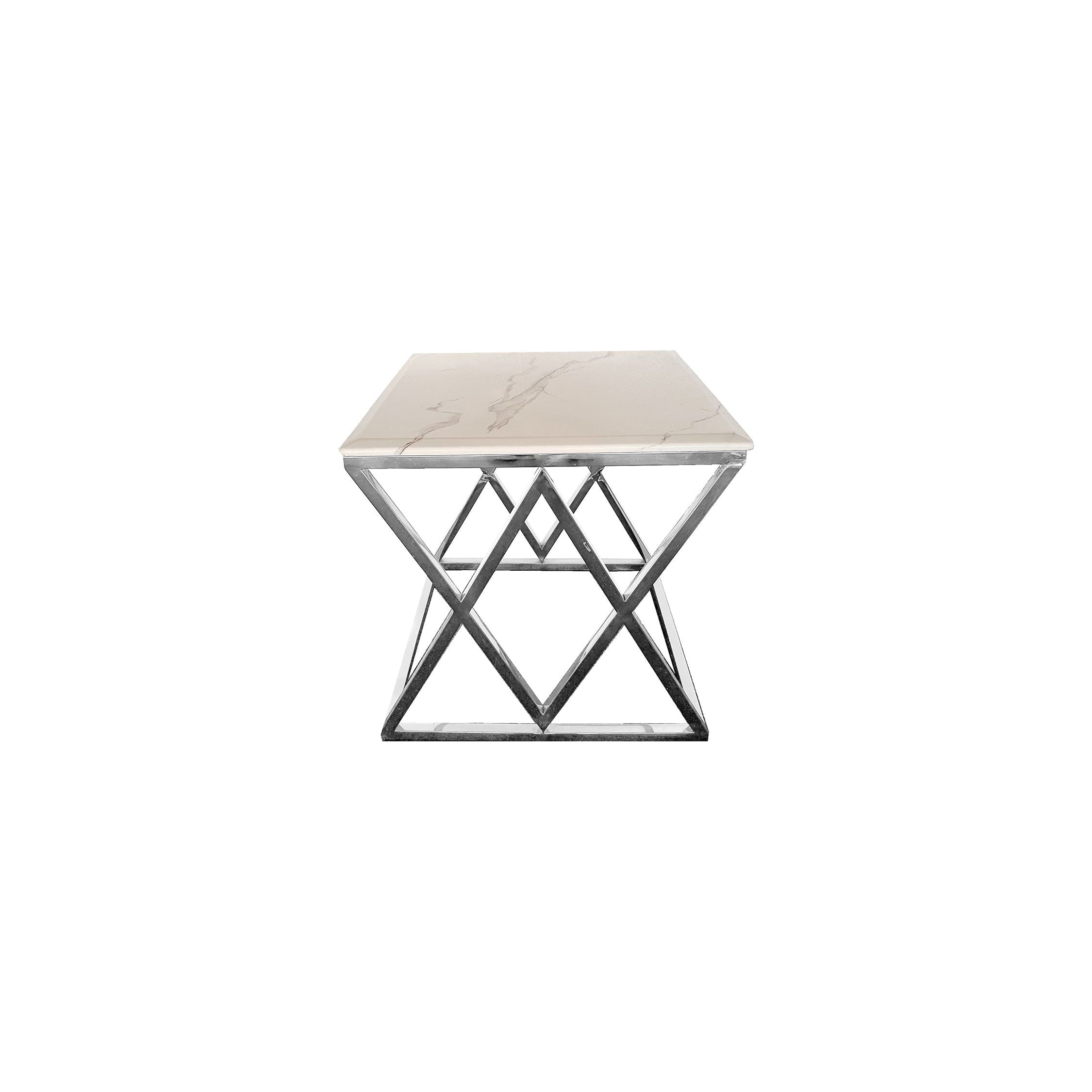 Alsea Side Table Silver Base - White Marble
