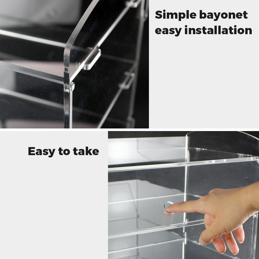 Introducing our 2 Tier Bakery Display Case offers ample space and great convenience with a transparent acrylic build.This pastry display case features a front door, allowing customers to view and quickly select their favorite treats.Ideal for showcasing cakes, pastries, and more in bakery, cafe, donut shop or markets.