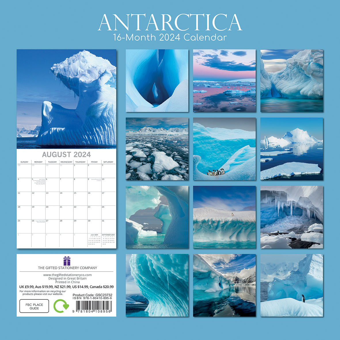 Antarctica - 2024 Square Wall Calendar 16 Months Planner Christmas New Year Gift