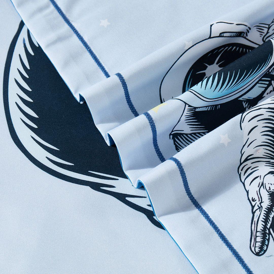 Transform your child’s bedroom into a space adventure with our astronaut-themed quilt cover set. The quilt cover features an astronaut on a skateboard, with planets and stars in the background, making it perfect for any young space enthusiast.