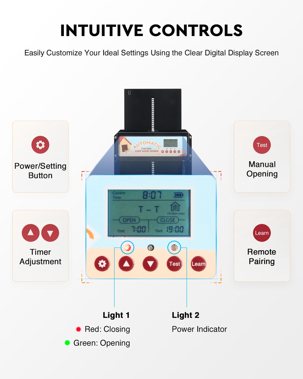 Automatic Chicken Coop Door Solar/Battery/AC 6W Aluminum Copper