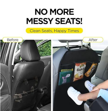 Back Seat Cover For Kids + 3 Pocket Storage Organizer, 2 Pack X-Large Waterproof Kick Mats Backseat Protector, Car Seat Back Protectors For Vehicles To Protect From Dirt, Mud & Scratches