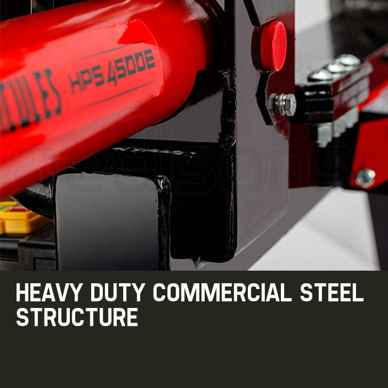 The HPS4500E also features an impressive 150mm hardened steel splitting wedge, 90mm hydraulic ram, 2200 watts of power, 540mm log splitting ability and an oversized commercial grade air filter and motor. This machine is sure to save you time as well as your back, with a 16 second splitting cycle and ergonomic large one-handed operating lever. Furthermore, its practical large flat dual braces secure the timber and catch split logs, making your life even easier through the colder months.