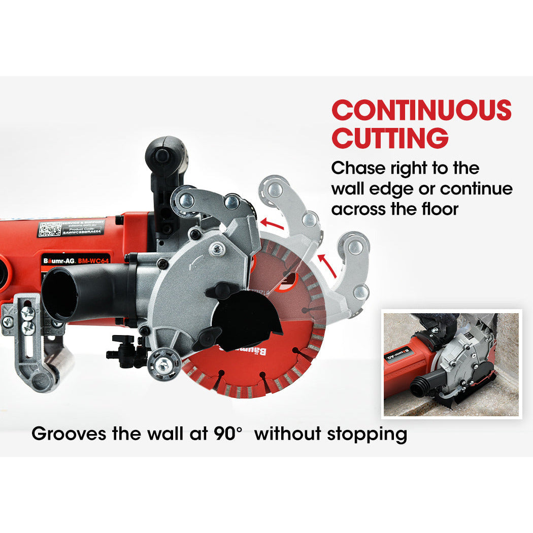 Work smarter and enjoy the satisfaction of completing your projects in a clean, dust-free work space with The Baumr-AG BM-WC64 Wall Chaser and Vacuum combo. It offers fast and dust-free chasing and is ideal for concealment of conduit of wires.