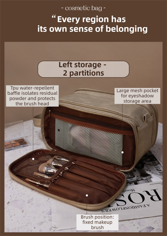 • Integrated Dry & Wet Separation: The internal waterproof lining allows you to store wet sponges, toothbrushes, or damp items without moisture seeping into other compartments.