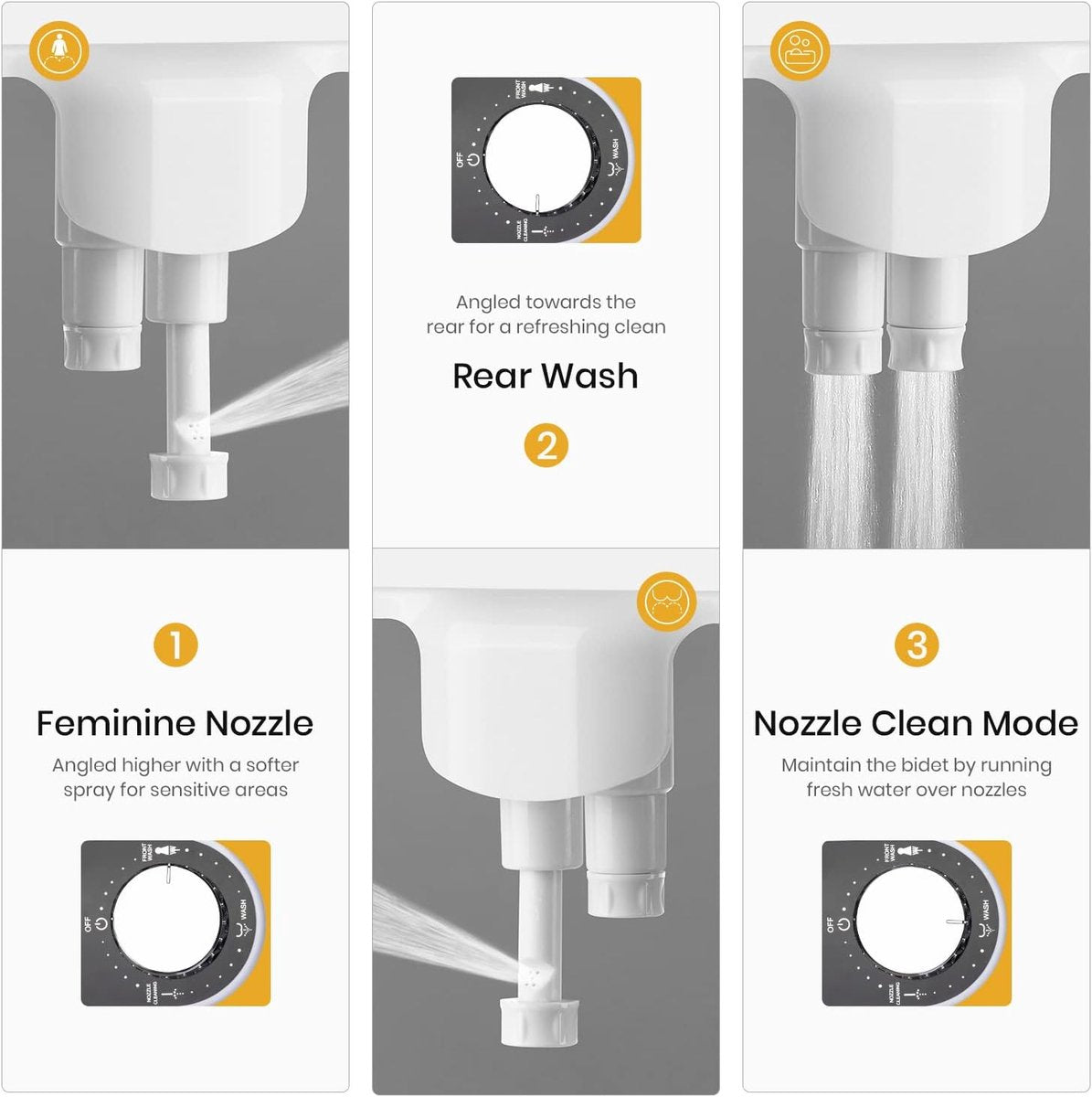 Smart Toilet Seat Without Electricity: Easily Enhance Your Toilet Use Enjoy a Convenient Clean Without Electricity! This smart toilet seat without electricity is designed for comfortable use, compatible with over 95% of toilets on the market, and convenient for the elderly, pregnant women, and children. Key Benefits: No Electricity, Safe The seat runs solely on faucet water pressure, eliminating any electrical safety risks. Ready to use immediately after installation, saving money and effort. Dual Jets + Multiple Cleaning Modes • Smart Toilet Seat Mode: Five water outlets provide a powerful and concentrated water jet to thoroughly flush away residual dirt; • Feminine Mode: Seven water outlets provide a gentle water jet, especially suitable for use during menstruation, pregnancy, and after childbirth; • Self-Cleaning Jet: The jet is automatically cleaned before and after each use, reducing bacterial residue and ensuring a cleaner, more hygienic experience. Thoughtful Design Details • Adjustable Water Pressure: The dial allows you to easily switch between gentle and powerful water pressure to suit your cleaning needs. • Recessed Sprayer: The sprayer does not touch the toilet seat, preventing cracks during use and improving durability. • Adjustable Mounting Plate: Suitable for toilet seats with a gap of 90-240.5 mm. Reinforced ribs ensure sufficient load-bearing capacity and a stable and secure installation. Quick 3-step installation: Remove the toilet seat → Install the smart toilet seat → Connect the water supply. No tools required; easy installation at home for optimal toilet cleaning. Made of durable and impact-resistant ABS material, combined with braided stainless steel water pipes, for a perfect balance of safety and style, giving you a more comfortable and hygienic toilet experience. Health Benefits: Daily Personal Hygiene: Select the right sprayer and water pressure by turning the dial after every toilet visit for a thorough clean, removing toilet paper residue and leaving you feeling fresh and comfortable. Menstrual Care: Use the special feminine hygiene spray nozzle during menstruation. Adjust the water pressure for gentle yet thorough cleaning, ensuring personal hygiene during menstruation. Elderly Care: This smart toilet seat helps seniors install the right equipment. It's easy to operate independently, has adjustable water pressure to prevent discomfort, and improves quality of life. Product Dimensions: Length 41 cm, Width 25 cm, Height 12 cm Show more