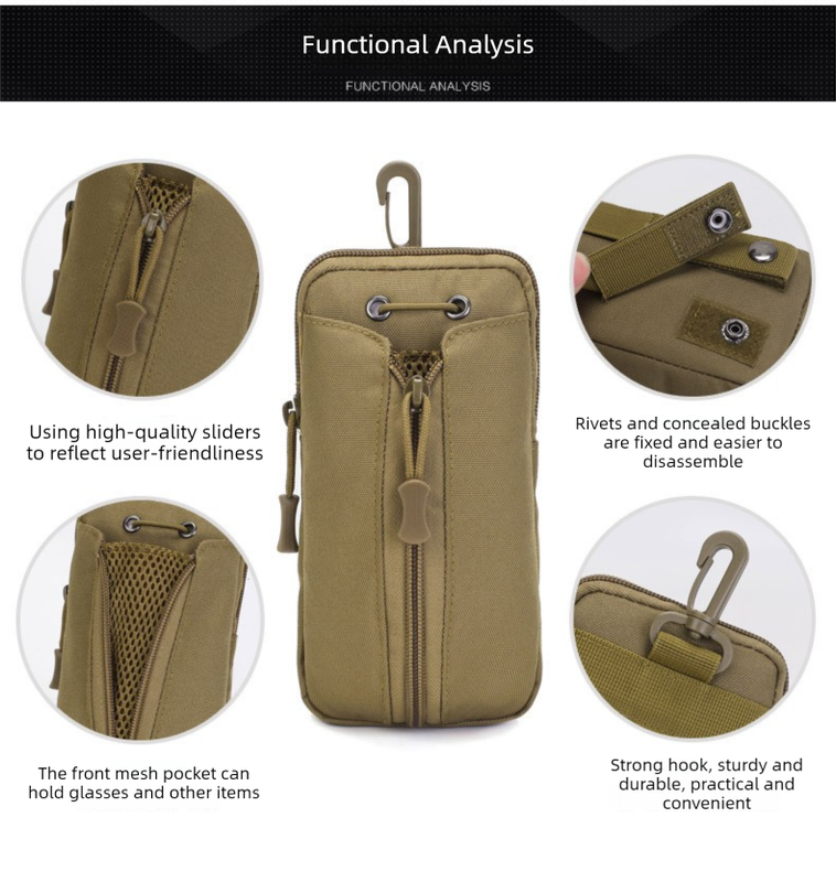 The combination of rugged Oxford fabric, secure zippers, and intelligent interior layout ensures your items stay protected and easily accessible. The carabiner clip adds flexibility, letting you attach it anywhere—on your belt, backpack, or even your bike frame.