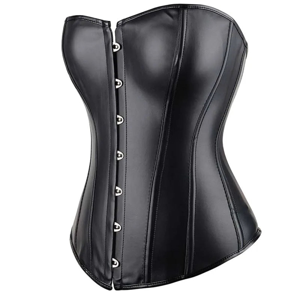 Black Leather Plus Size Corset Slimming S-6Xl Bustier With Lace-Up Boning And Pleated Design - Black - L