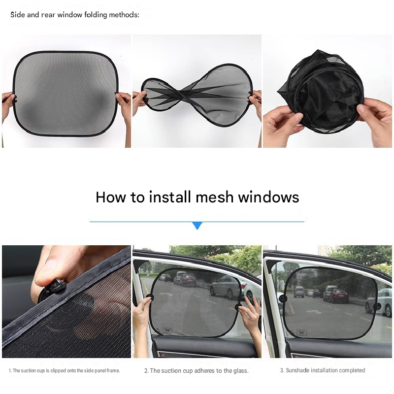 Keep your car's interior cool and protected from the harsh sun with our Universal Car Window Sun Shade Set. Designed to block direct sunlight and reduce cabin temperature, these mesh fabric sun shades are essential for summer driving. They offer excellent shading properties while maintaining visibility, ensuring safety for the driver and comfort for all passengers. Easy to install with suction cups and convenient to store, this set provides a comprehensive solution for sun protection in your vehicle.