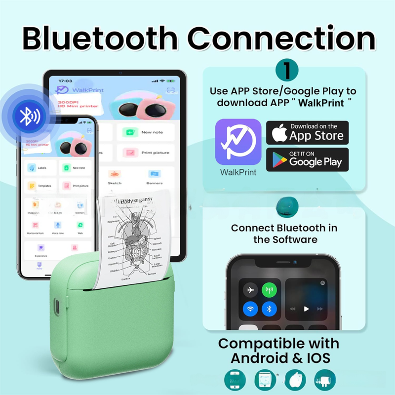 Unlock endless possibilities with this pocket-sized Bluetooth thermal printer. Perfect for students and DIY enthusiasts, this deluxe set allows you to instantly print photos, study notes, labels, and to-do lists directly from your smartphone. With no ink required and a massive 12-roll paper bundle included, it's the perfect creative gift for any occasion.