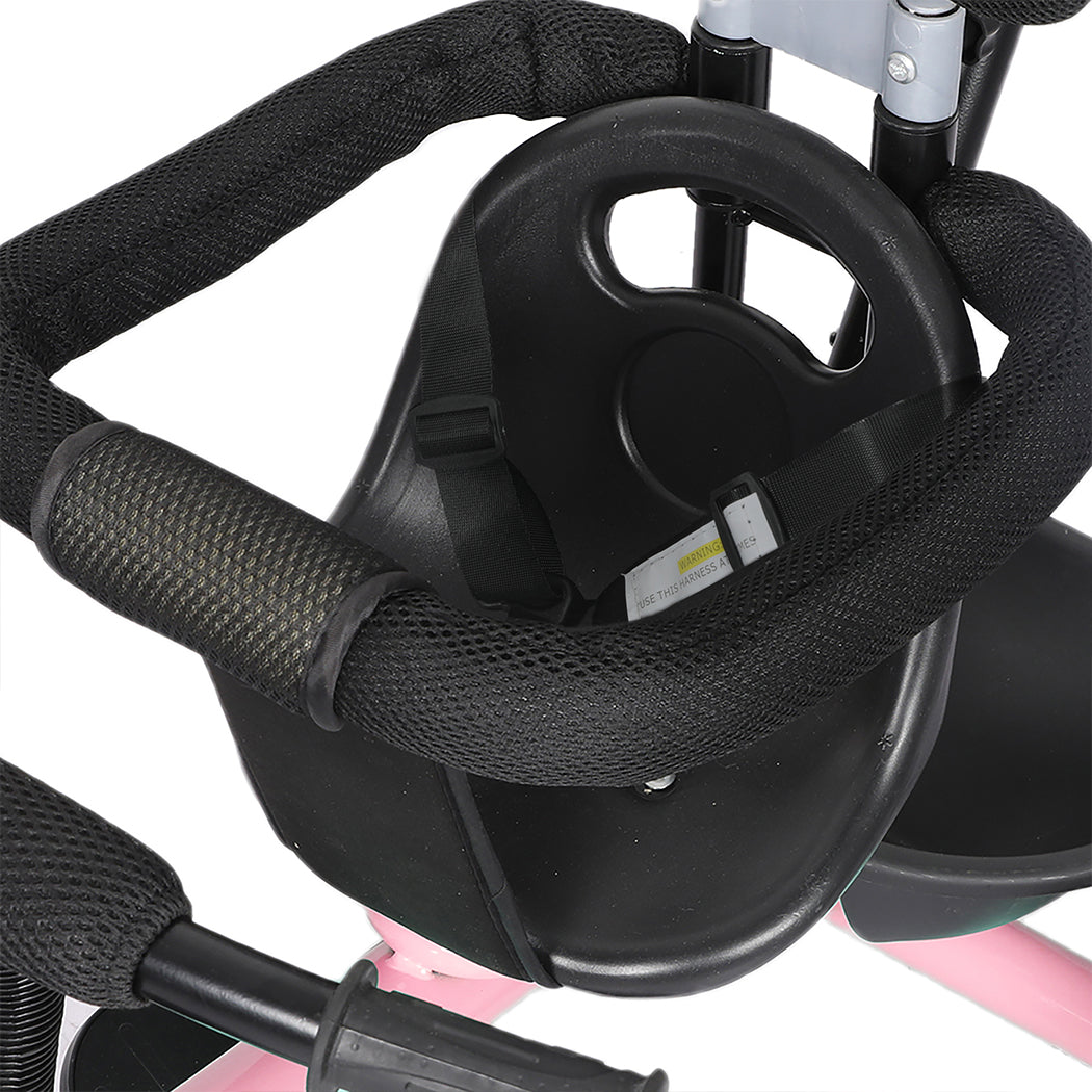 Get your child use to their new trike. They can rest their feet on the stationary pedals as you push them along. When they grow older, they can start to cycle their trike all by themself.