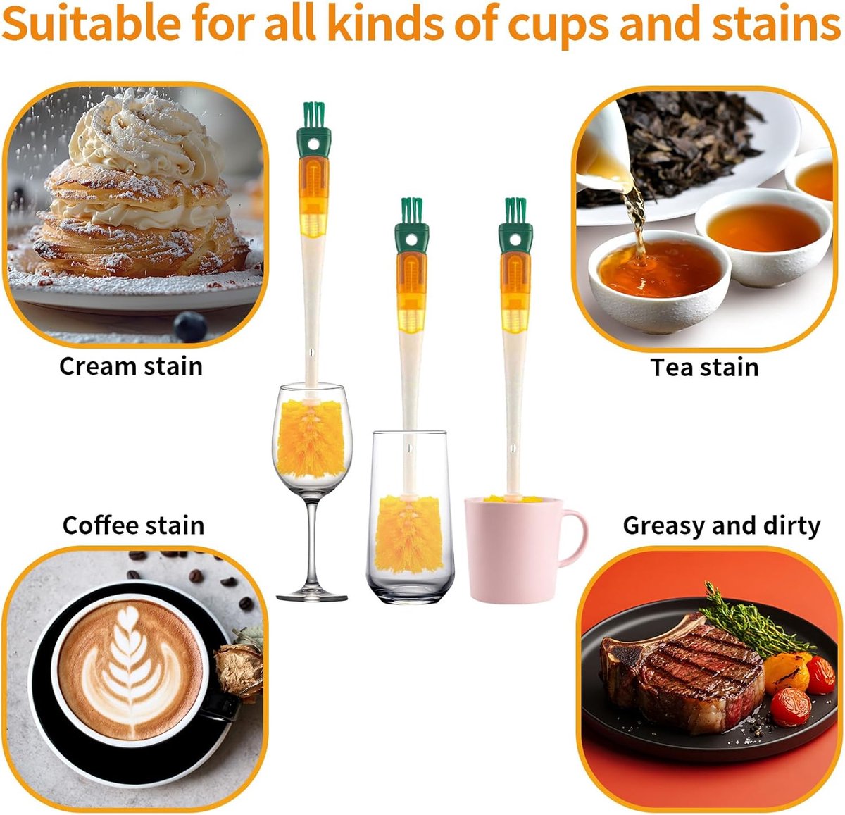 Safe and Non-Toxic: All parts of the bottle brush are made of safe and non-toxic materials, so there are no health risks during cleaning. You can use it with peace of mind; this bottle brush is safe for you and your family. Easy to Clean: The bottle brush itself is easy to clean and store after cleaning. The design combines convenience and functionality, making cleaning easier and more efficient. 5-in-1 Design: This multi-functional bottle brush effectively cleans cup rims, straws, and other hard-to-reach places, keeping your drink containers thoroughly clean. Soft Brush Head: The specially designed brush head reaches deep into the crevices of bottles to effectively remove any remaining dirt and bacteria. The fine bristles of this bottle brush easily remove various stubborn stains, leaving your bottles looking like new again. Comprehensive Cleaning: This bottle brush is suitable for all types of bottles, whether they are water bottles, sports drinks bottles, or baby bottles. Thanks to its flexible design, it easily adapts to bottles of different shapes and sizes for comprehensive cleaning. Show More