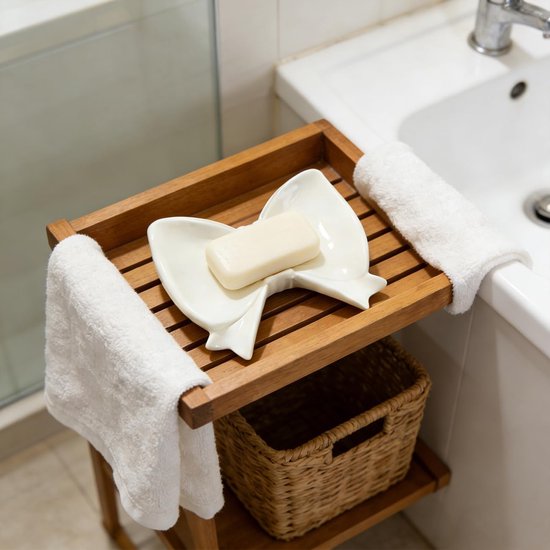 [Efficient Drainage & Hygiene] Say goodbye to wet, messy soap! This ceramic soap dish features raised edges and a slanted drainage system to keep your soap dry, extending its life, and creating a clean, hygienic environment.