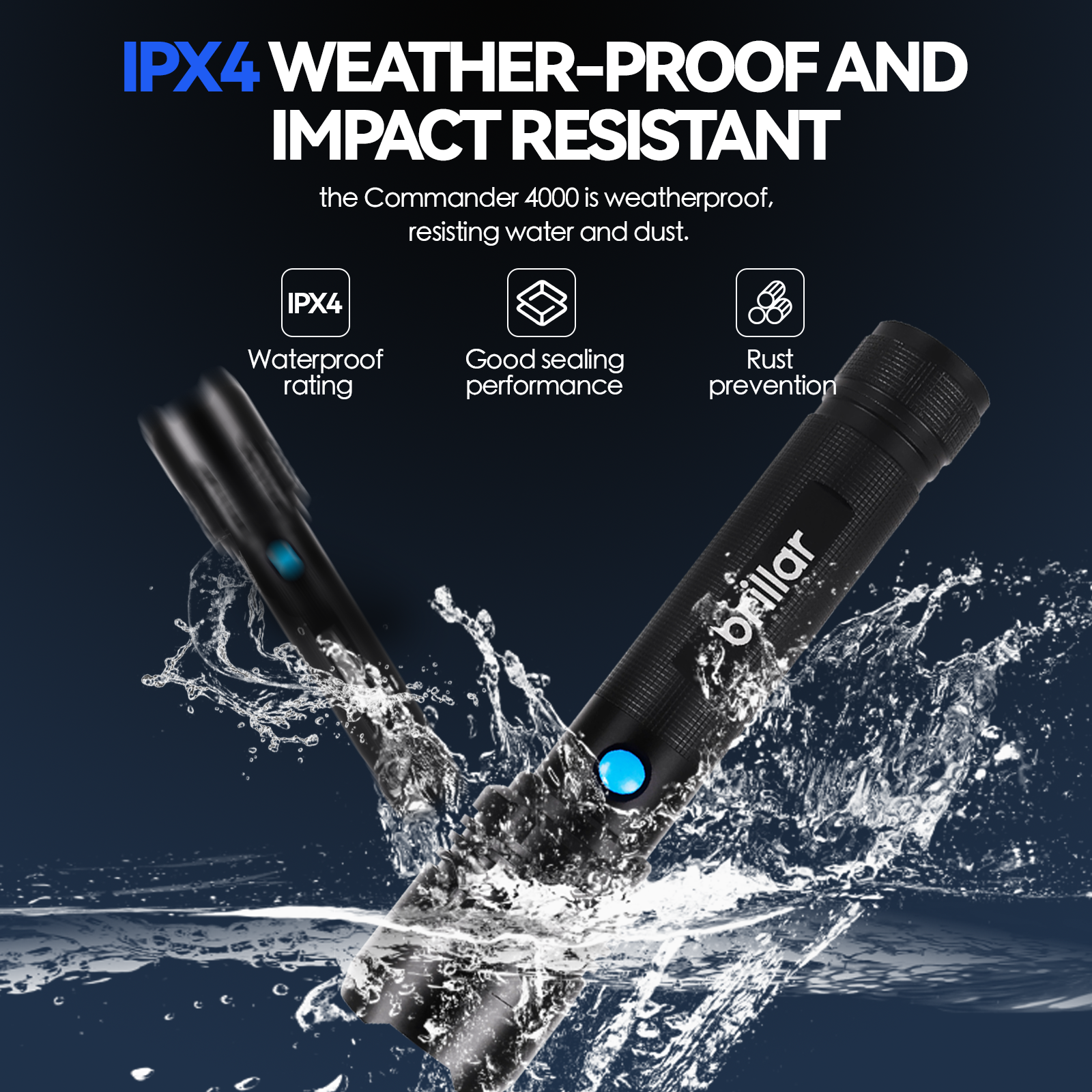 Take command of the situation with Commander 4000. With 4000 lumens of peak power output, it will light up objects at great distances. Which is ideal for boating, campaign or any number of outdoor uses. It's weatherproof resisting water and dust, And tough enough to withstand anything you can throw at it. With a large capacity, the power bank can charge smartphones and tablets, And up to 20 hours of runtime. The Commander 4000 will keep you going longer.