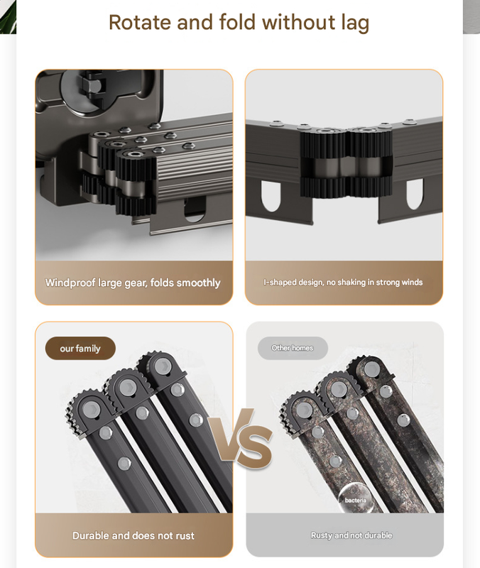 Maximize your drying space with this wall-mounted foldable clothes drying rack. Perfect for small spaces, its sturdy aluminum design and windproof hooks provide a reliable solution for drying clothes indoors or outdoors.