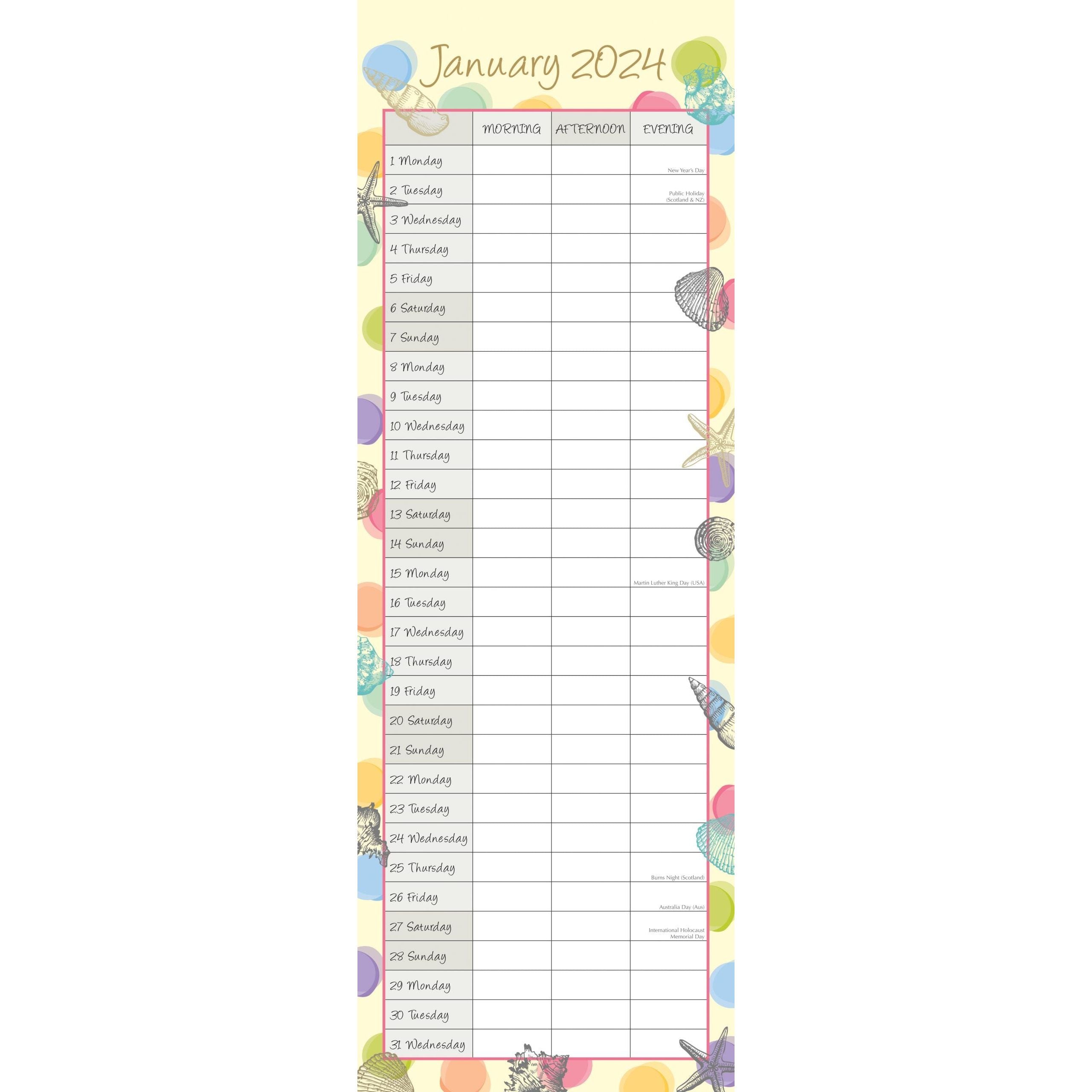 By the Sea - 2024 Slimline Slim Wall Calendar Hanging Planner New Year Gift