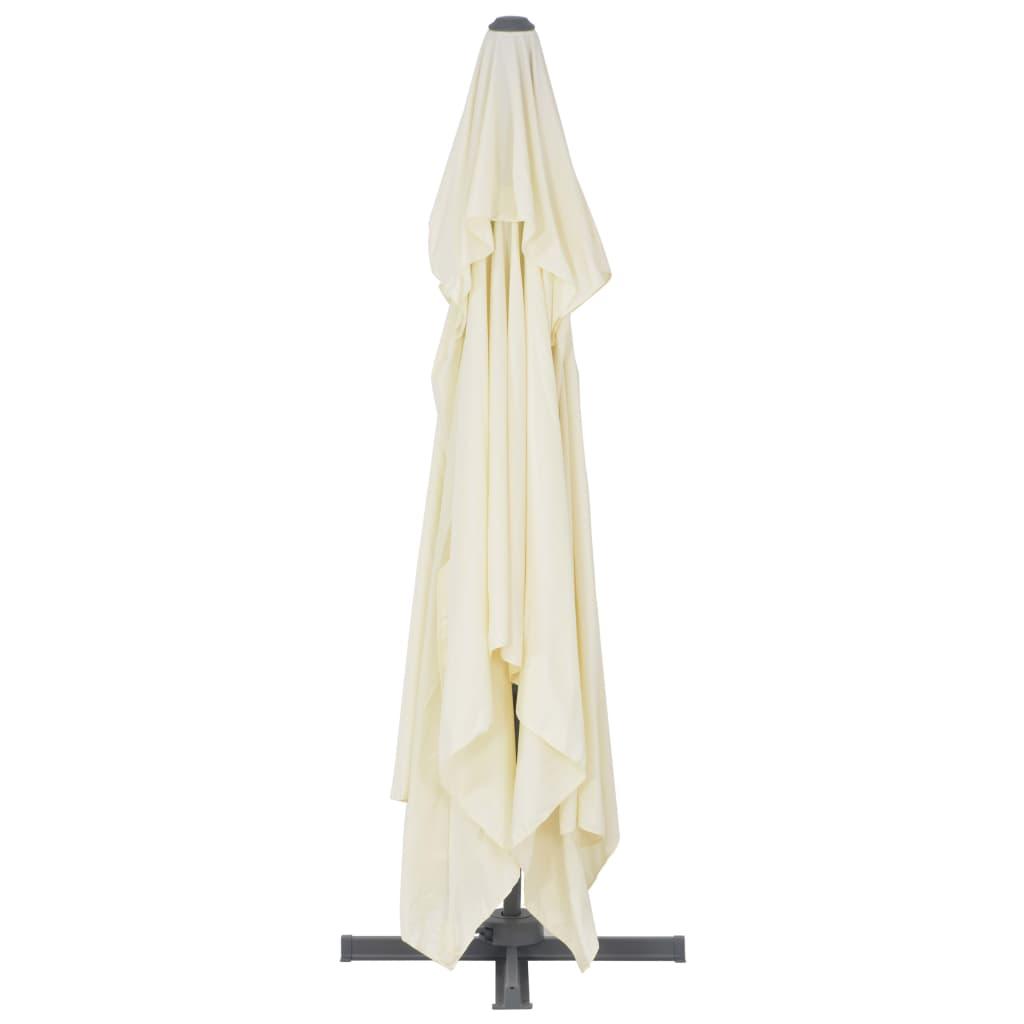 This elegant hanging parasol is perfect to create some shade and protect you from the sun's harmful UV rays. Made of UV protective and anti-fade polyester, the parasol cover provides you with optimum protection against the sun and is easy to clean. It features a sturdy cross base to add stability. Our garden umbrella can be easily opened and closed by simply turning the knob on the pole. The angle of the cover can be adjusted by pushing and pulling the handle up and down. The centre pole can also be rotated in 360 degrees by means of the pedal. The strong powder-coated aluminium pole, along with the 8 durable ribs, makes this parasol very stable and durable. The item is easy to assemble. Please note that we recommend treating the umbrella fabric with a waterproofing spray if it is subjected to heavy rainfall.