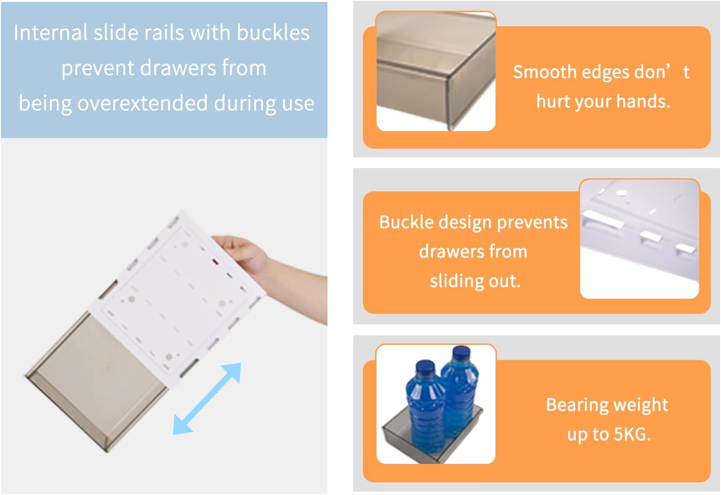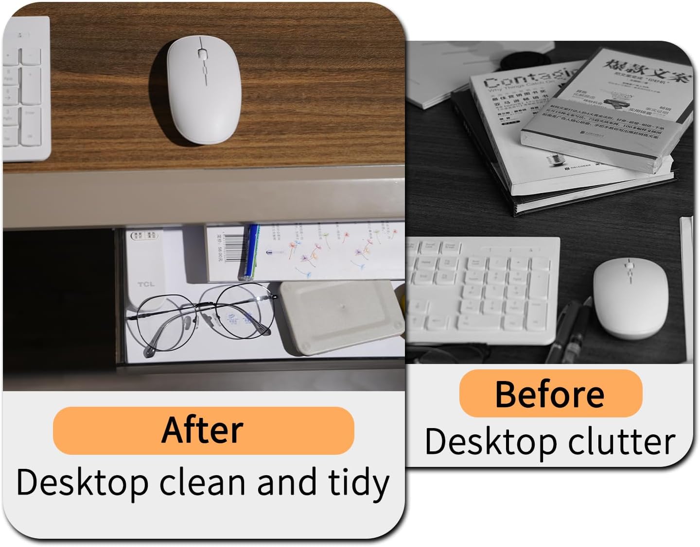 CARLA HOME 3‑Pack Under Desk Storage Drawers Hidden Pull‑Out Organizer for Office & Home This item stands out for the following characteristics: HIDDEN SPACE-SAVING DESIGN: Maximize your workspace with these sleek, under-desk storage drawers that keep your essentials out of sight but within easy reach. Ideal for creating a clutter-free and modern desktop. 3 SIZES FOR FLEXIBLE STORAGE: Includes large (33 cm), medium (24 cm), and small (20 cm) drawers to accommodate everything from A4 paper and notebooks to pens, gadgets, and cables. Perfect for customizing storage across different desk sizes. STRONG ADHESIVE & OPTIONAL SCREW MOUNT: Each drawer installs easily with the included adhesive tape—no tools required. For extra durability, screw holes are built-in for optional secure mounting on flat surfaces. SMOOTH SLIDE & SAFETY STOPPER: Drawers glide effortlessly on built-in tracks and include safety stoppers to prevent them from sliding out completely. Enjoy easy access with peace of mind, even when fully loaded. Key features: Item Dimensions: 21 x 7 x 19 cm. Item weight: 1.7 kg. Package Dimensions: 36 x 27 x 10 cm. Package weight: 1.98 kg. The box includes the product and all its components and a simple instruction set. One product per package.