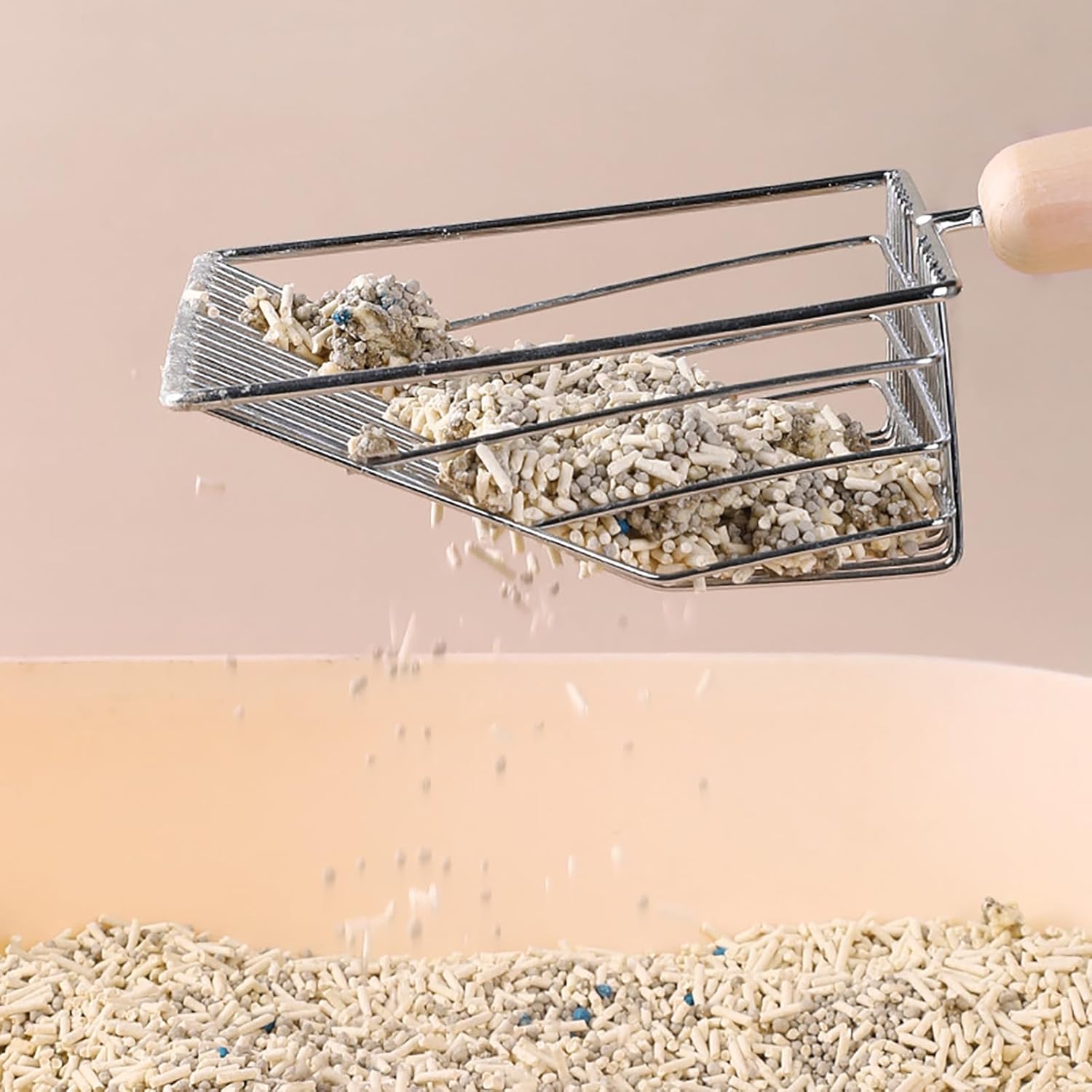 Features The sharp edge helps to loosen clumps. The sifting part holds wet clumps and lets clean litter pass through easily. The long handle keeps you away from cat poop. It is designed to keep the litter box clean and save you a lot of litter. Durable and Ergonomic Handle Full metal diecast body, comfortable wooden handle, wearresistant ABS base, all together makes this scooper last for years. Easy to Use Kitten scooper has specially prepared a base for storage. The base is easy to clean, just rinse with water. It is convenient to put the litter scoop after use. Easy to Clean Easy to clean metal cat scoop helps keep areas clean and tidy. It is highly recommended by cat lovers for daily use. Deep Shovel Sifter Design Cat litter scoop is built to make scooping poop so easy, the smooth shape is designed to cover all corners of your cats litter box and reach deep for every scoop.