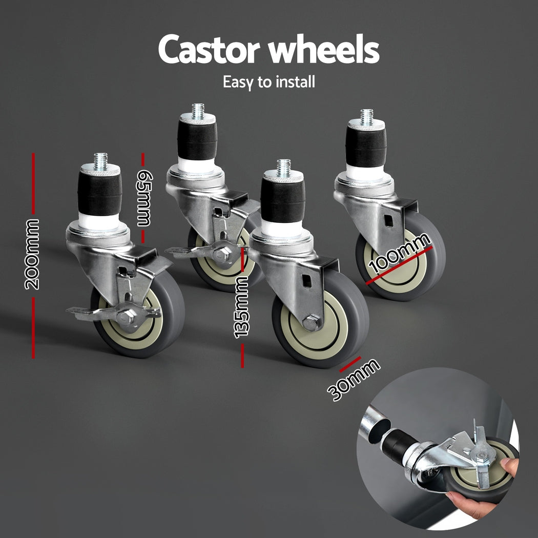 Made of 304 graded stainless steel, you can be assured that it will be a long lasting item in your kitchen. Fitted with lockable castors, stability is no longer an issue. Don't worry of tumbling bench anymore. Can be easily flat-packed for portable and on-site work, it is your first choice at all times.