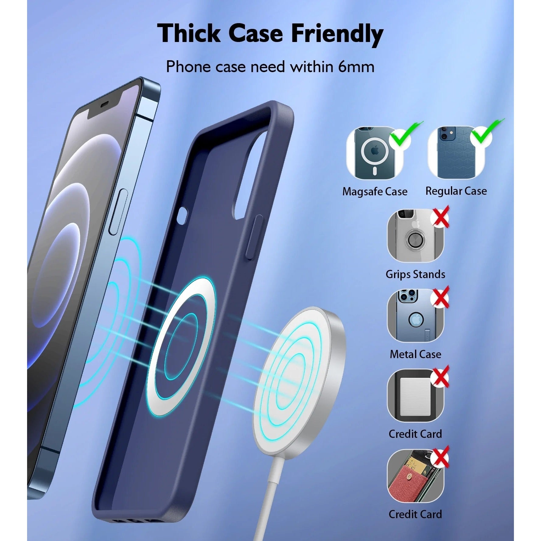 Compatible with iPhone Series 14 Pro Max/14 Pro/14 Plus/14, iPhone Series 13 Pro Max/13 Pro/13/13 Mini, iPhone Series 12 Pro Max/12 Pro/12 Mini/12, compatible with MagSafe and regular cases, Airpods 3/AirPods 2/ AirPods Pro.