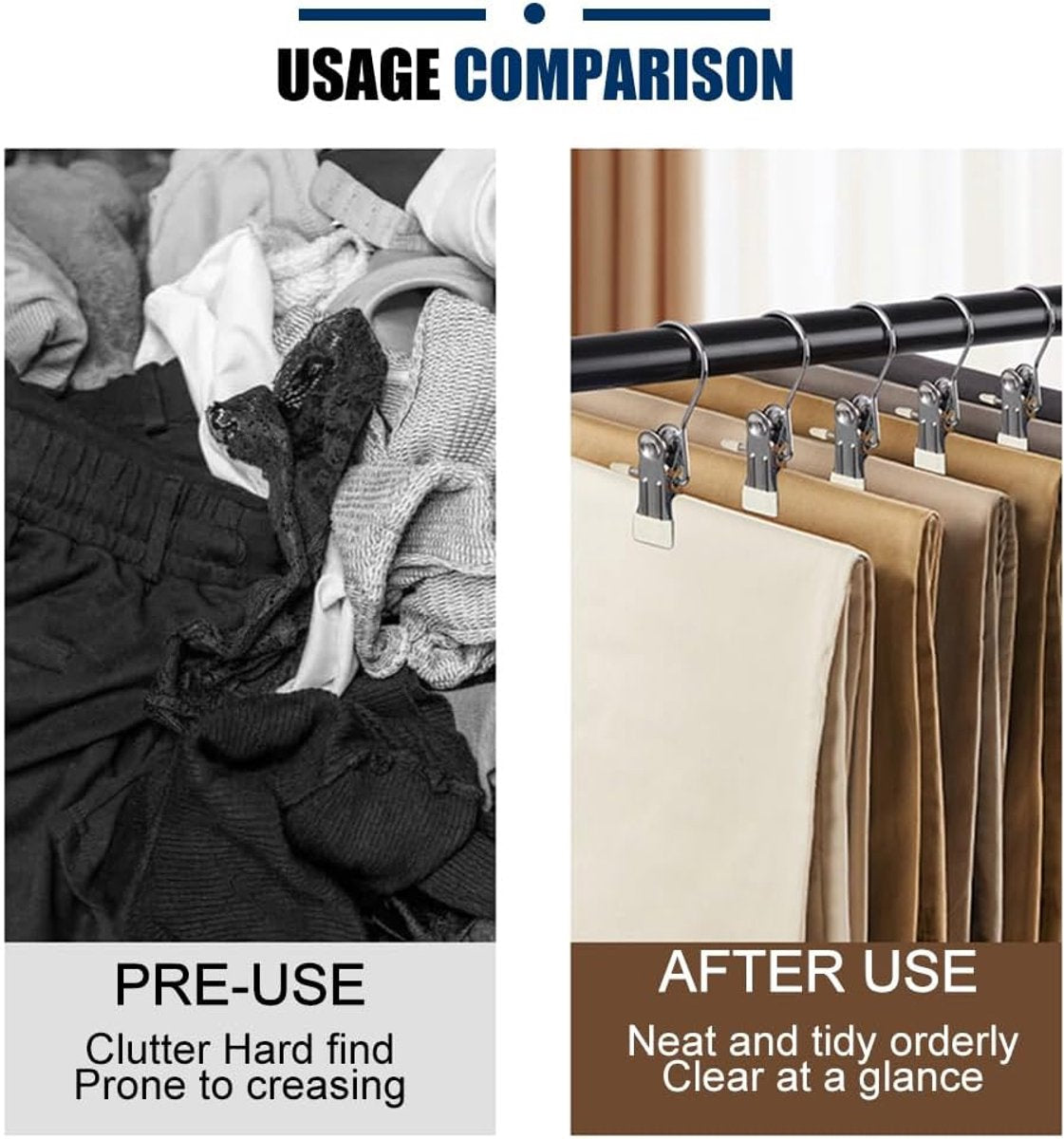Strong Non-Slip Clamps: These hanger clips feature a strong non-slip grip to keep trousers, skirts, and scarves securely hung without slipping or falling. High-Quality Stainless Steel (Stainless Steel):Made of durable stainless steel that will not rust or warp. Suitable for long-term use and withstand daily opening and closing. Soft Protective Coating:Pink silicone tips prevent marks and damage to clothing, ideal for delicate fabrics like silk and chiffon. Space-Saving & Multifunctional:Perfect for hanging trousers, skirts, jeans, towels, and accessories. Keeps your wardrobe organized and tidy. Suitable for Daily Use:Compact size and lightweight operation, ideal for home use, clothing stores, or while traveling. Show More