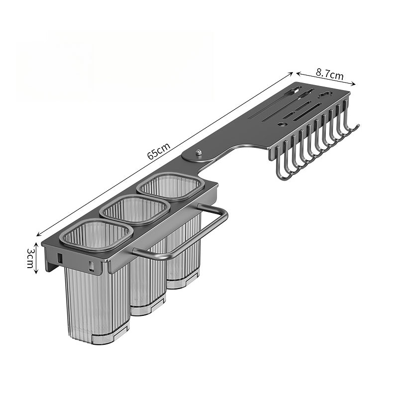 This compact rack saves kitchen space and is suitable for those with countertop or storage space. Its innovative nodrill wall mounting design allows for easy installation without damaging the wall. It is used to organize and store knives, chopsticks, and spoons.