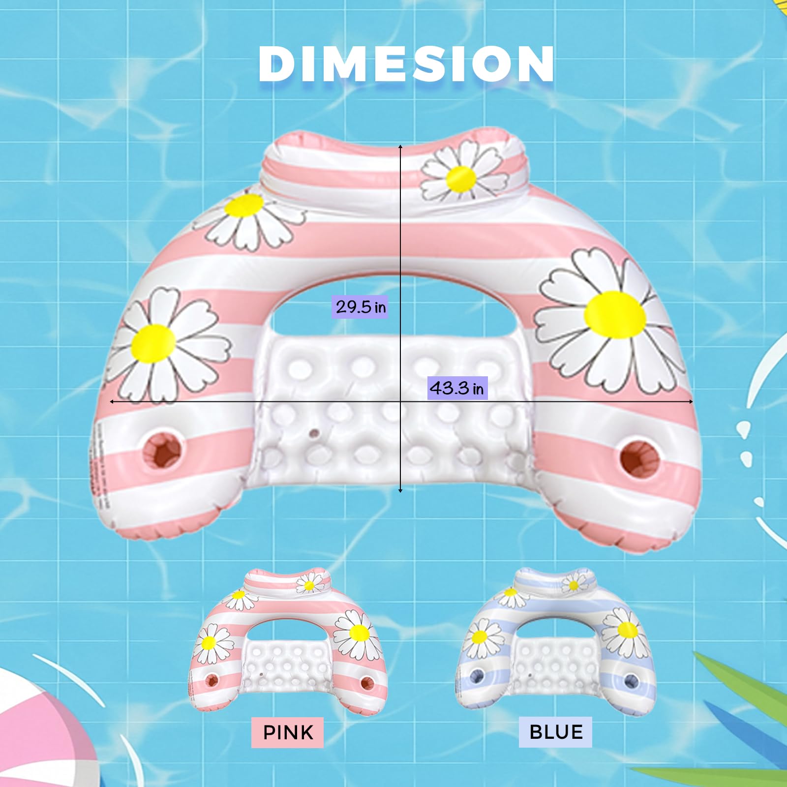 For Australians seeking stylish, comfortable poolside relaxation, the Daisy Inflatable Pool Floats 2-Packare a summer essential. Featuring charming daisy prints in pink and blue, these U-shaped lounge chairs add a cheerful vibe to any pool, beach, or lake outing. Designed for adults, they blend fashion and function, making them perfect for parties, family gatherings, or solo relaxation.