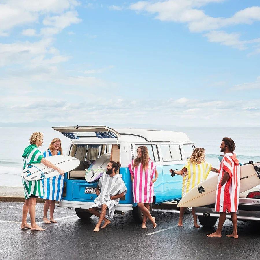 Be seen in stripes with an eye catching solution to getting dry in public places. This quick-dry poncho is perfect for any beach day, providing dryness and warmth between dips, and also makes a perfect cover to change in and out of your swimmers.