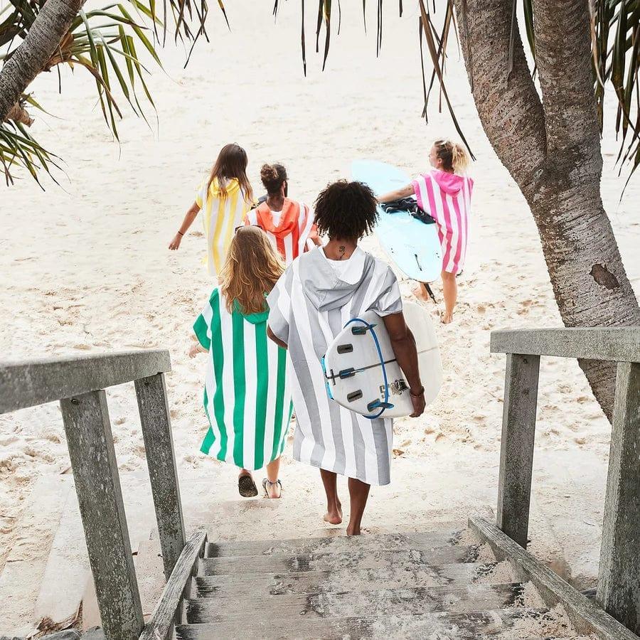 Be seen in stripes with an eye catching solution to getting dry in public places. This quick-dry poncho is perfect for any beach day, providing dryness and warmth between dips, and also makes a perfect cover to change in and out of your swimmers.