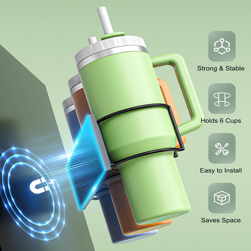 Keep your kitchen counters clutter-free and your favorite insulated tumblers within reach with our Magnetic Fridge Side Rack. Specifically engineered to support heavy 40oz tumblers (like the popular Stanley style), this rack features powerful industrial magnets that attach instantly to any metal surface. With a dedicated slot for the cup and a specialized hook for the lid, it provides a secure and stylish home for your hydration essentials without the need for drilling or permanent hardware.