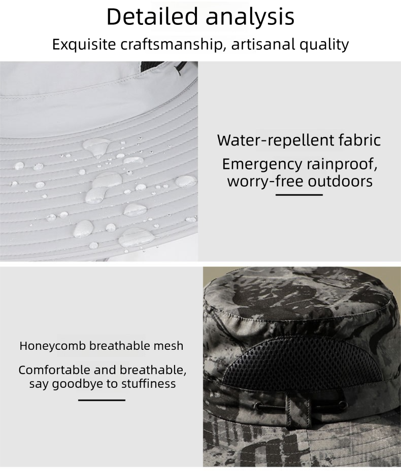 Comfort is paramount with an adjustable head circumference (56-60cm) and a secure chin strap to keep the hat in place during windy days or boat rides. The fabric is treated with a lotus-leaf water-repellent coating, ensuring it stays dry during sudden showers or whilst out on the water. With a battery life of 7-9 hours on a full charge, plus solar extension, you can stay cool from dawn till dusk.