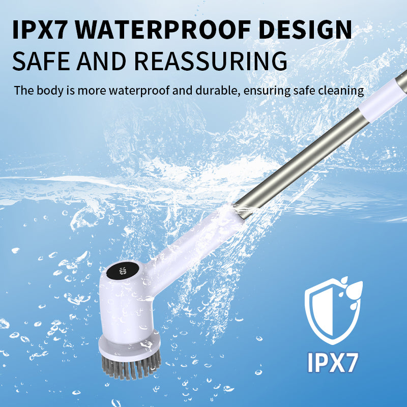 Dual Spin Speed: Features 2 adjustable speeds (280 RPM and 300RPM) and a digital display for easy monitoring. Whether you need a gentle clean for delicate surfaces or a more powerful scrub for stubborn grime, this brush adapts to your needs.