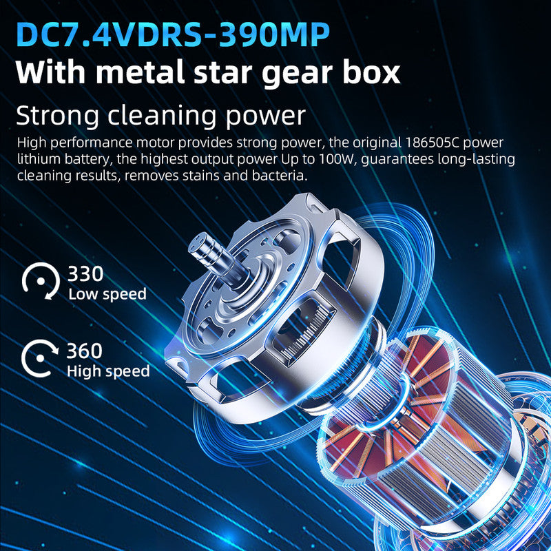 Powerful Scrubbing for Stubborn Stains: Equipped with a 100W motor and 20KG torque, this electric scrub brush provides powerful performance for removing tough stains and grime. Suitable for cleaning enthusiasts, professional cleaners, and anyone needing an efficient tool for maintaining a pristine home or vehicle.