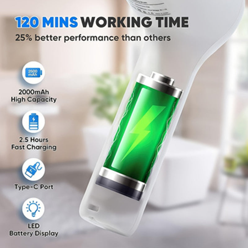 Extended Battery Life for Deep Cleaning: Built-in 2000mAh/7.2V lithium battery allow up to 100 minutes of continuous cleaning on low speed and 80 minutes on high speed per charge. Perfect for extensive bathroom cleaning, thorough tile maintenance, and long cleaning sessions without frequent recharging.