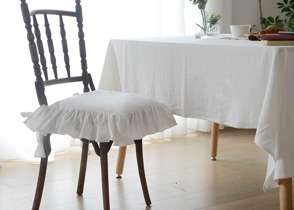 Farmhouse Indoor Chair Cushions for Dining Non-Slip Rocking Chair Cushions with Zipper Ruffled Cotton Seat Cushion for Kitchen White Retro Chair Pads with Ties 14.5''×14.5''