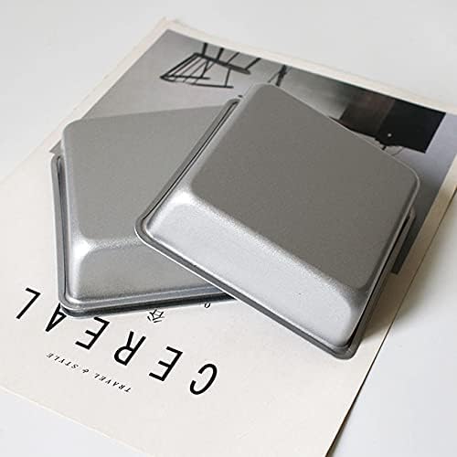 Each Non-Stick 4" Square Cake Pan 4-Piece Set is coated with Whittford non-stick coating inside and outside of the pan. The non-stick finish allows baked goods to release easily from the pan while making clean up a snap. The heavy weight steel construction ensures even heating across the pan for ultimate baking result. Pans are dishwasher safe. Pan measures 4.3"long by 1.2"deep.
