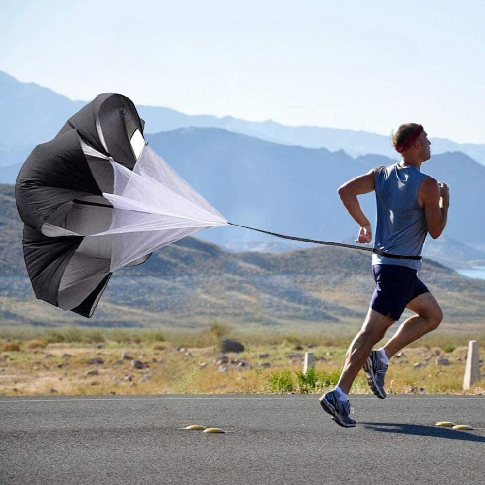 1 parachute:Increase your speed and strength with our adjustable parachute. It creates resistance during sprint drills, strengthens your muscles and increases your speed. Size: 1.41x1.41 meters.