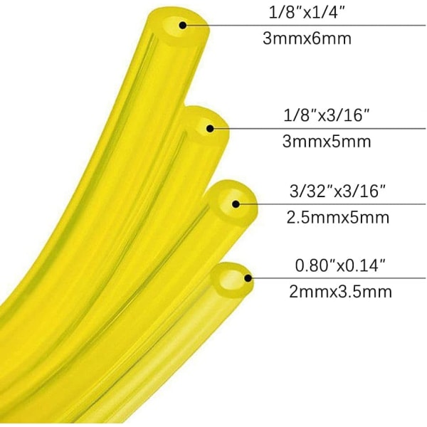 Durable Pipes ---- Our fuel pipes are strictly processed and have a certain ability to prevent expansion and are not easy to age and harden. Can be used for a long time. Size and Quantity ---- We provide 4 different sizes of hoses, 2 X 3.5 Mm/3 X 5 Mm/2.5 X 5 Mm/3 X 6 Mm (Id X Od), The length of the hose is 1 meter, each size has A Fuel Hose. Hose Color ---- The color of the fuel hose is yellow and the color is slightly transparent. Easy to find when the pipe is piled up with debris. The yellow and transparent design is also convenient to check the situation when using it. Easy to cut ---- Our fuel hose is soft in texture and very easy to use. You can easily cut your desired length and various shapes of openings with a knife as you need. Very useful ---- The fuel hose has a wide range of sizes, which are easy to adapt to the specifications of machines. The fuel pipe is suitable for oil filters, and scrapers, etc.