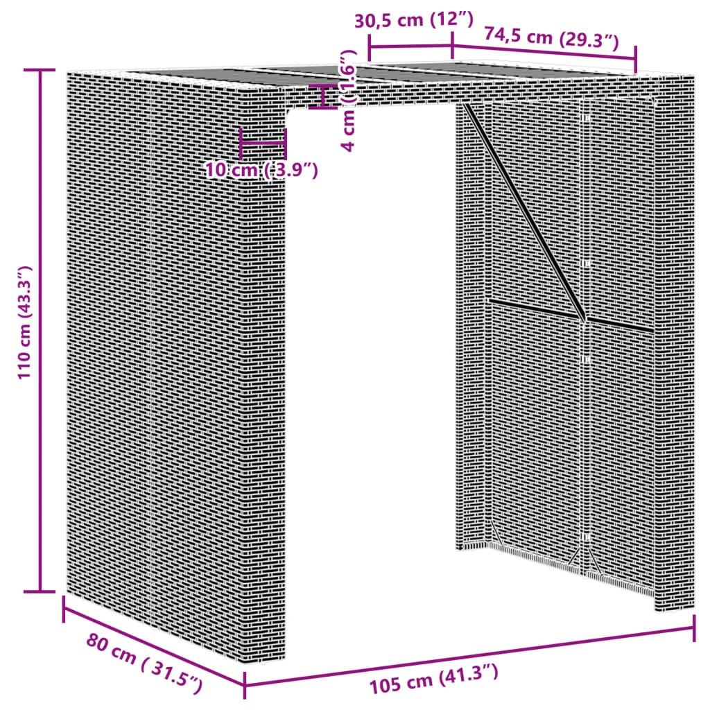 This garden bar table with a wooden top, designed with clean and simple lines, is an excellent choice for your garden, patio, and other outdoor space. Durable material: PE rattan, also known as poly rattan, is a strong, low-maintenance synthetic material that looks like natural rattan. It's lightweight, easy to clean, and commonly used for outdoor furniture due to its durability and weather-resistant properties.Stable and easy-to-clean tabletop: This garden table has an acacia wood top that is sturdy, durable, and easy to clean with a damp cloth.Robust and stable frame: The powder-coated steel frame ensures that the garden furniture is strong and stable for daily outdoor use. Good to know:To make sure your outdoor furniture stays beautiful, we recommend protecting it with a waterproof cover.