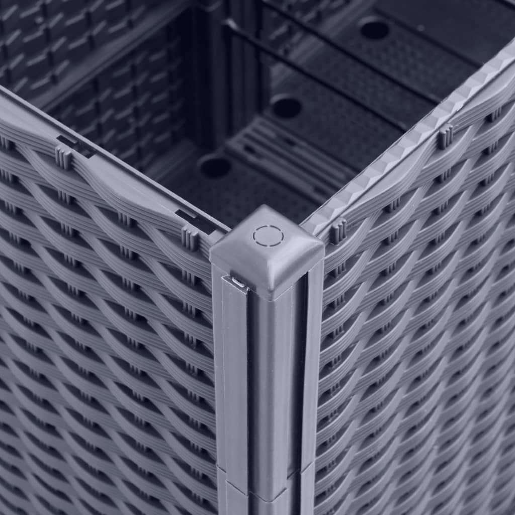 This garden planter with trellis is an excellent choice for climbing plants in your garden, patio and terrace. Durable material: Polypropylene is a popular plastic that is also one of the most used materials in outdoor furniture. It's lightweight, tough, and resistant to impact.Generous capacity: The outdoor planter provides plenty of space for growing all your vegetables, flowers and other plants.Practical design: The ideal bottom layer helps retain moisture and allows for easy drainage. Additionally, the integrated trellis offers great support for growing climbing plants such as tomatoes, peas, and roses.Modular design: This planter consists of 4 flower boxes that can be freely combined according to your needs.Beautiful rattan look: The patio planter is designed with a rattan look, bringing an elegant charm to your living space.